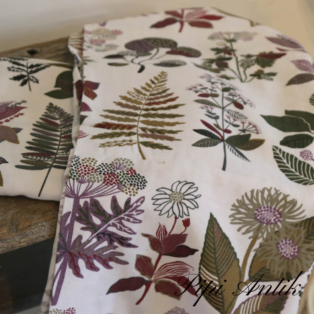 09. Tykke gardiner med blade blomster råhvidt olivengrønt rosa B119xH193cm