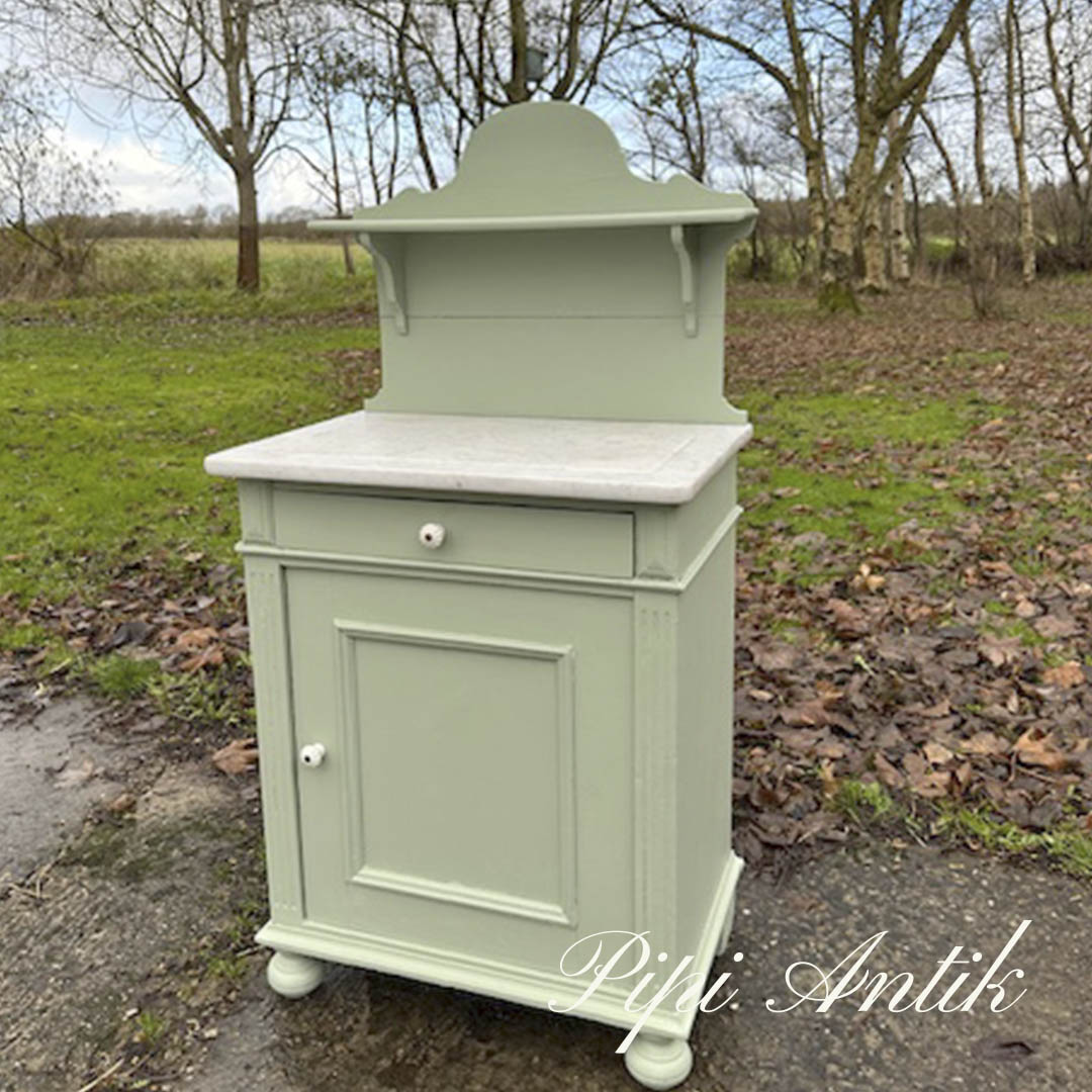02. Romantisk toiletmøbel sart grøn med hylde og marmorplade B63xD89xH122 bordH 79cm
