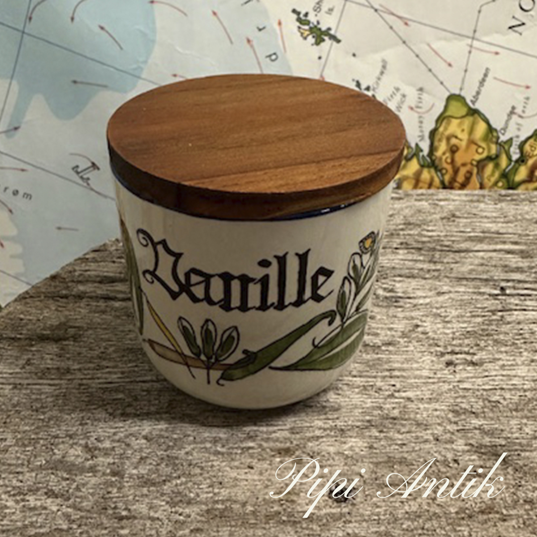 02. Knapstrup Vanille krydderikrukke med teak låg Ø7xH7cm