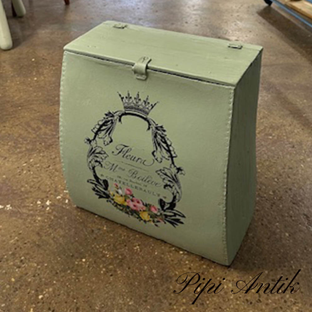 07. Romantisk grøn med transfer motiv opbevaring gl rygsæk med trælåg pap og træsider B37xD15xH39 cm