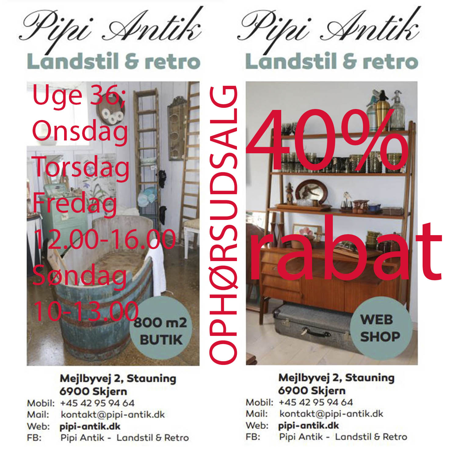 36 uge 2025 Åbningstider hos Pipi Antik
