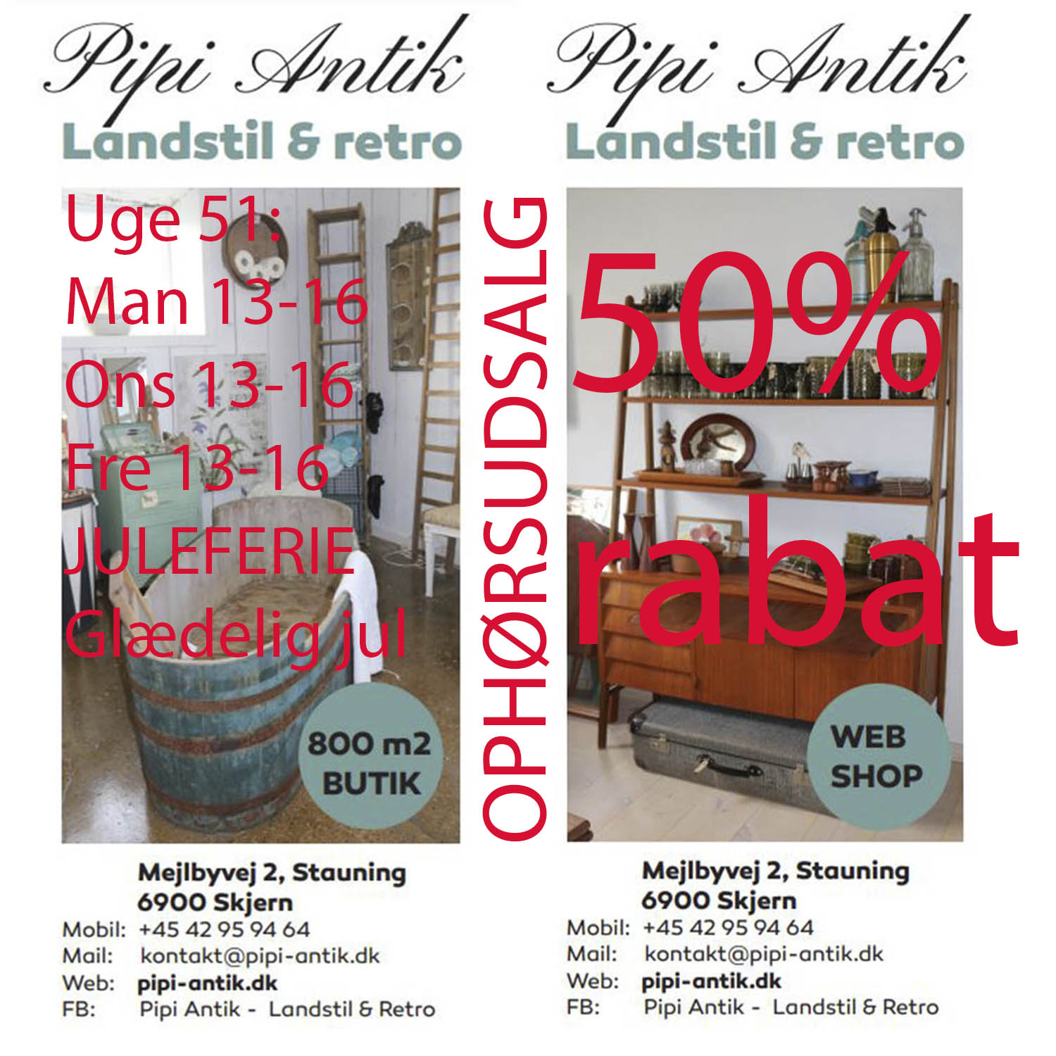 51 uge 2025 åbningstider hos Pipi Antik kopier