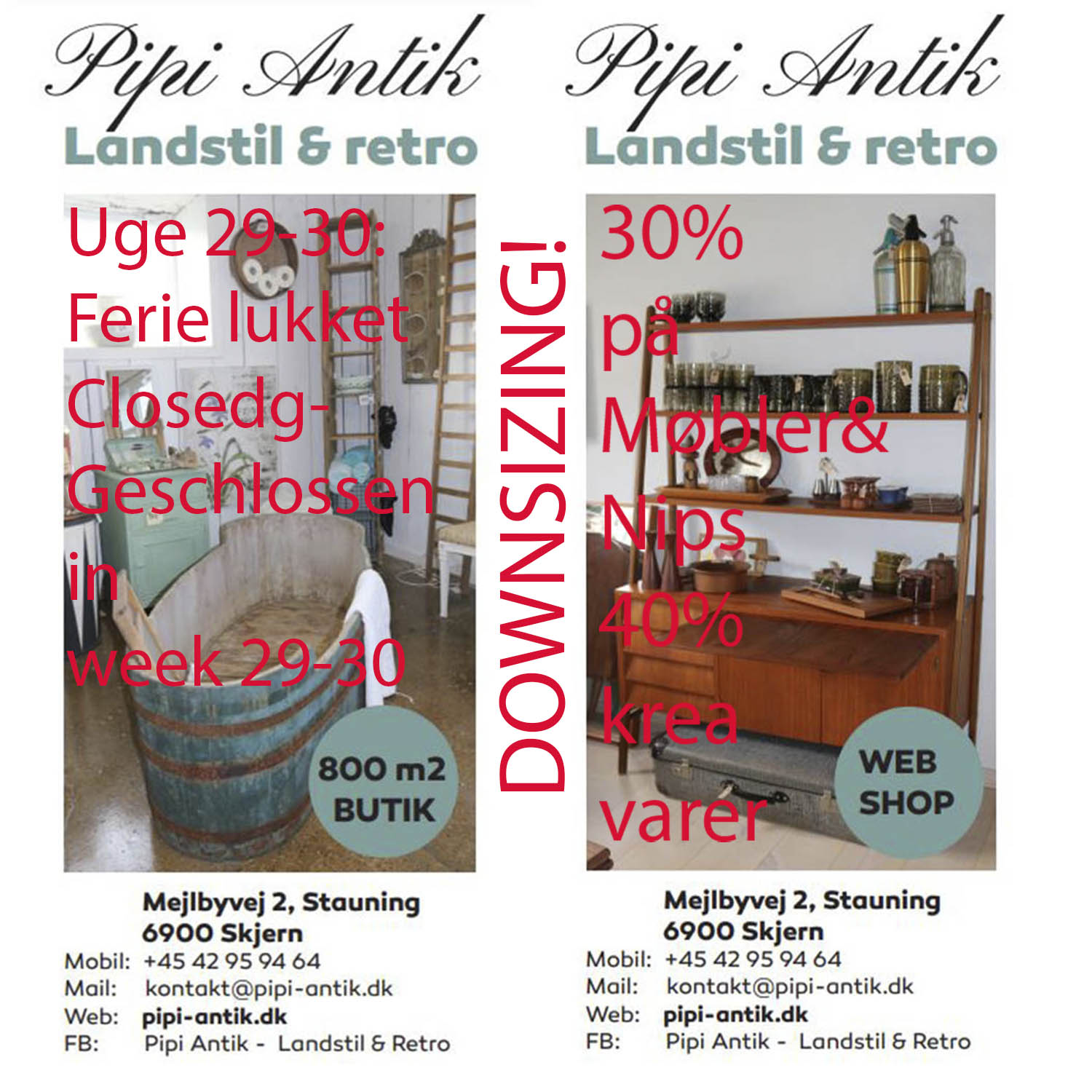 Pipi Antik ferielukket i uge 29 og 30 2025