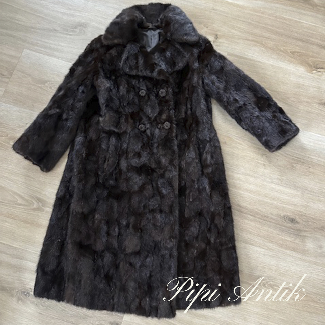 02. Pels Mink retro mørkebrun med store pynteknapper ca str 38-40