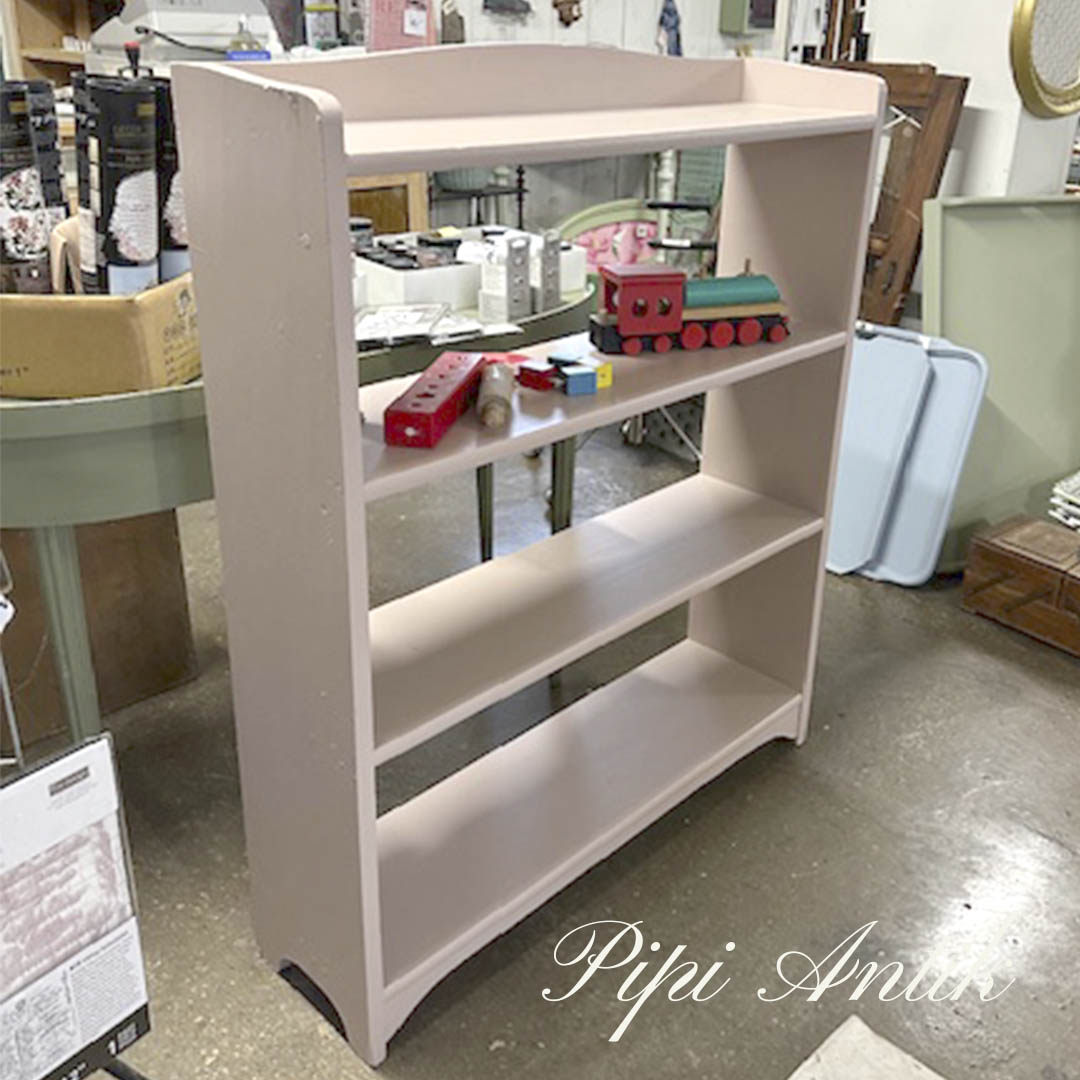 03. Træ reol i gammel rosa L90xD24,5xH114cm