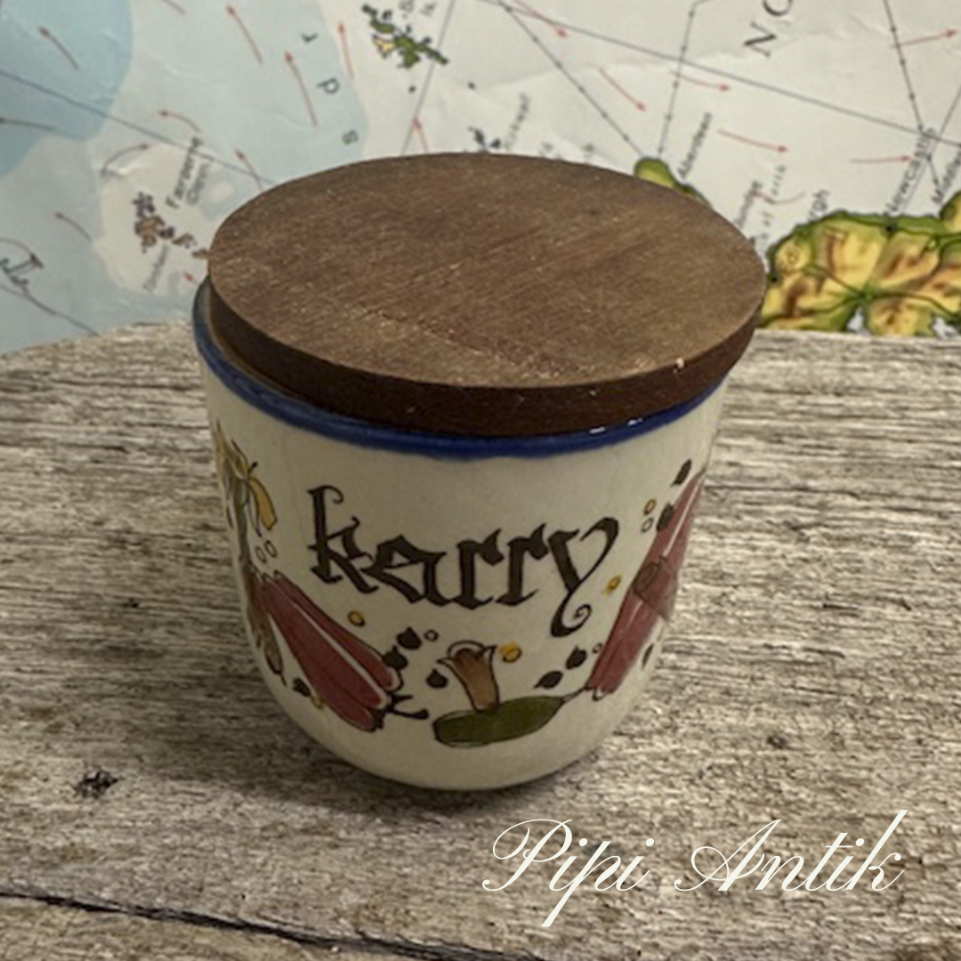 05. Knapstrup Karry krydderikrukke med teak låg Ø7xH7cm