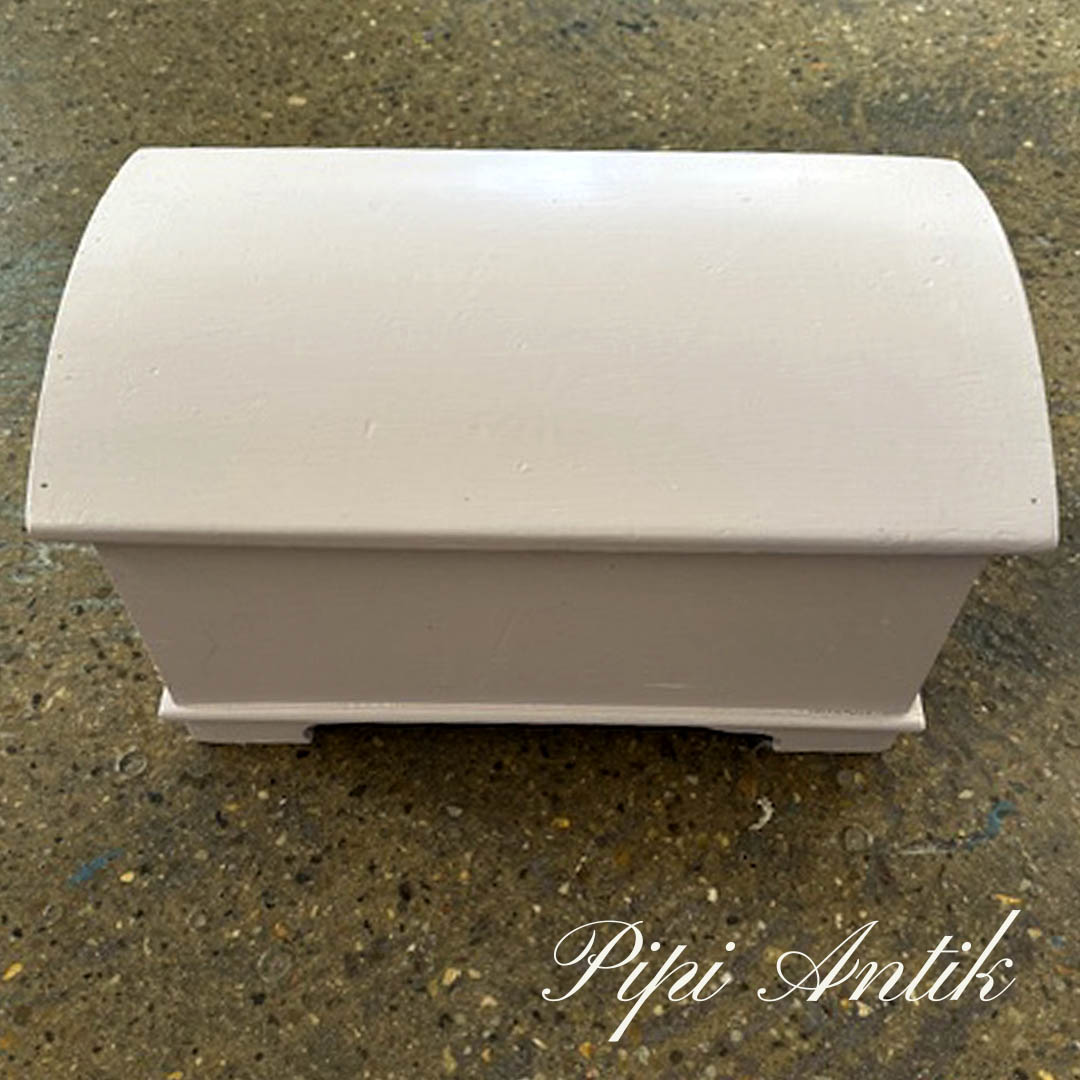 06. Skrin skattekiste lille i gammelrosa fra 1951 ommalet L33,5xB20xH19,5cm