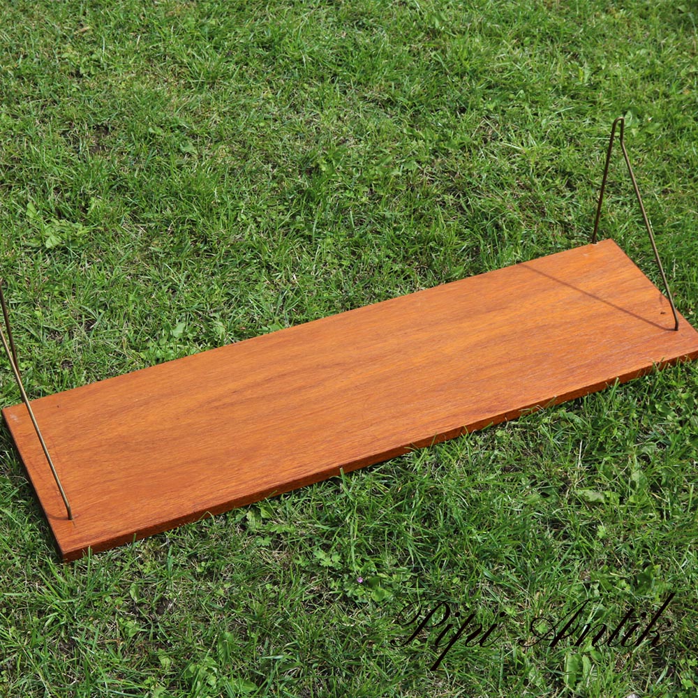 08 Teak hylde L80xD21xH23,5 cm – med sorte holdere.