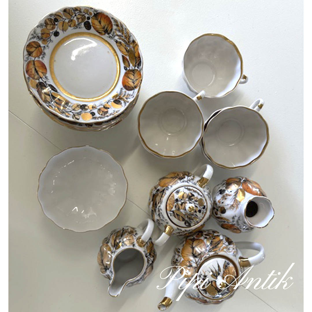 13. Russisk kaffestel med guldkant 5 kopper kande sukkerskål og fløde.