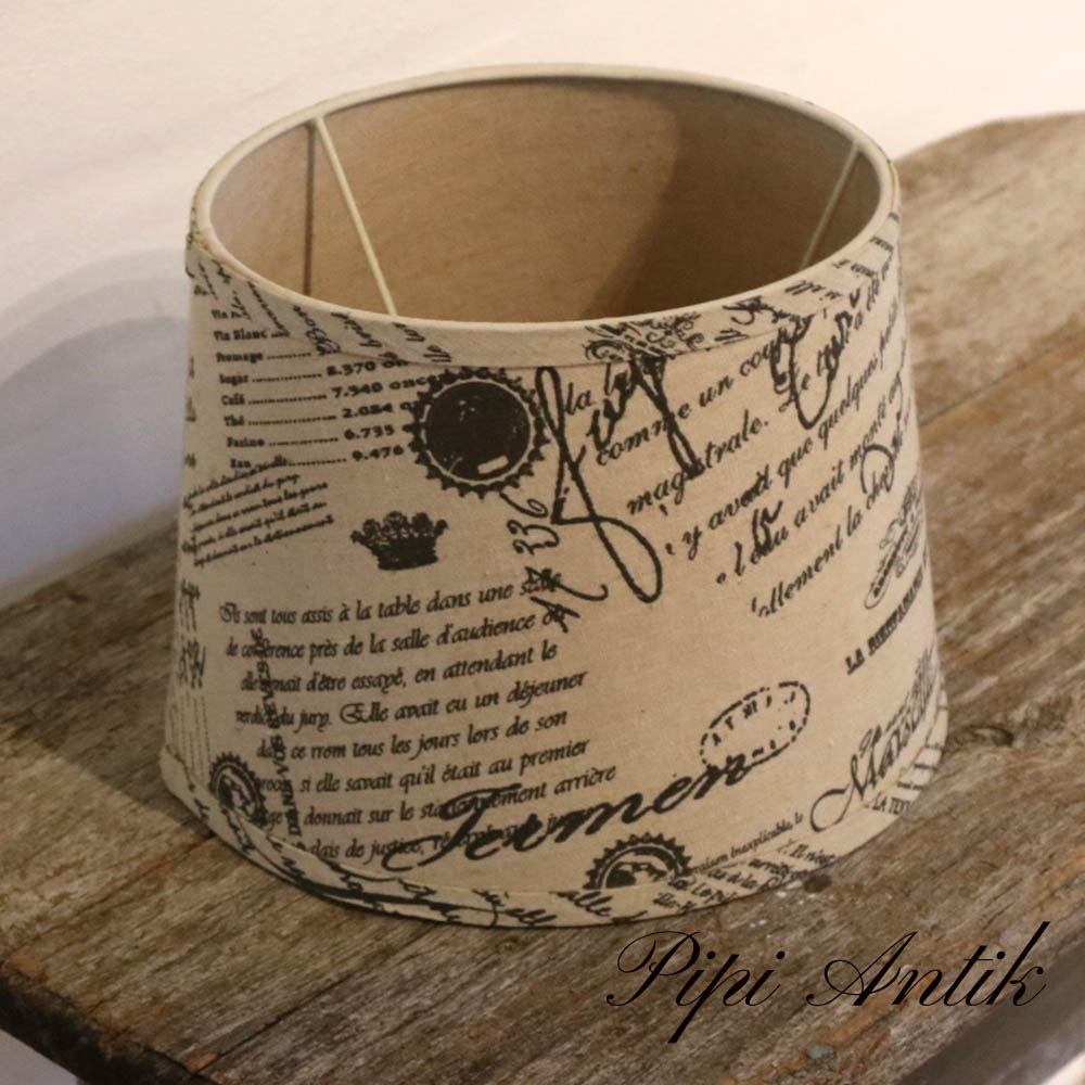 14 Lampeskærm beige med skrift Ø27xH27cm