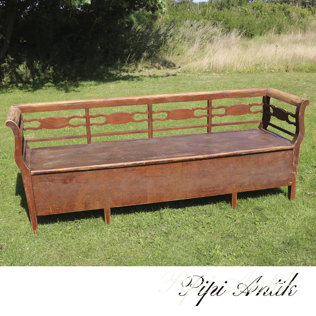 22. Svensk slagbænk patineret mørk L192xD53,5xH75cm SædeH43cm