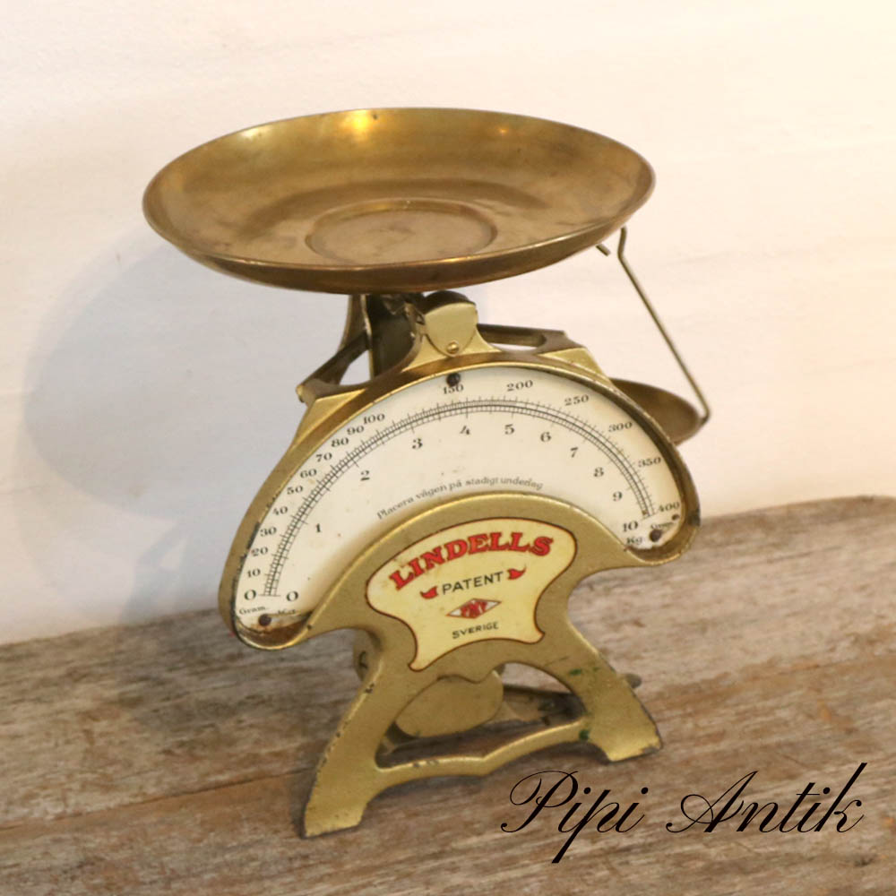 2854 Kobberlook Lindels køkkenvægt med skål Ø21xH25,5cm
