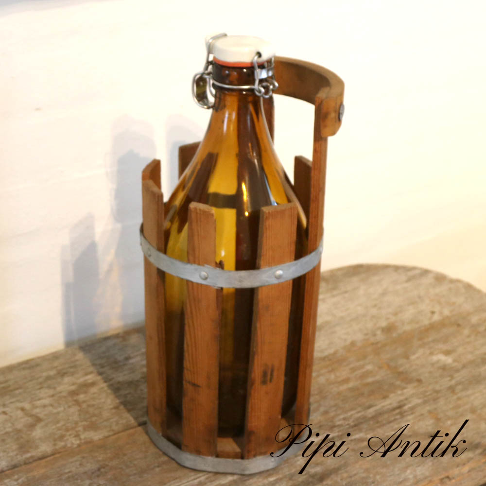 47 Brun ølflaske i trækasse Ø16xcH40cm