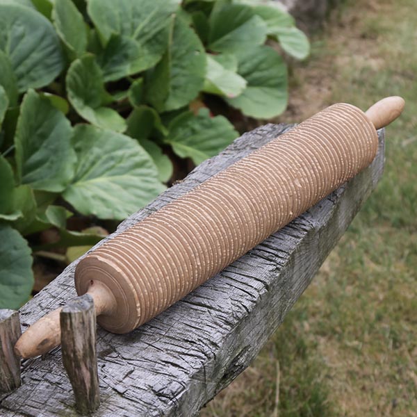 Stor knækbrød dejrulle med riller i træ 59 cm